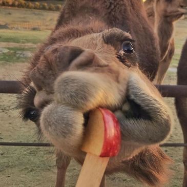 Your tour INCLUDUES ALL THE TREATS to feed the camels (40 apple pops) and grain for the mini sheep.