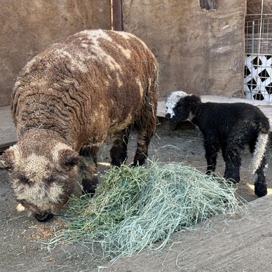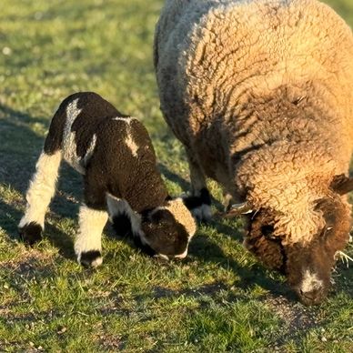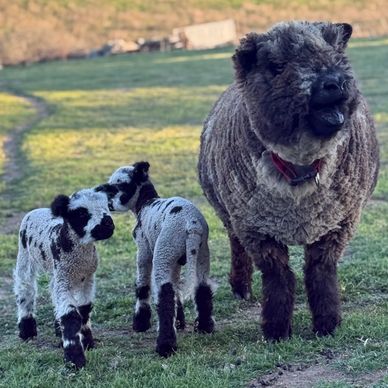 She has given birth to beautifully spotted babydoll lambs. This is her first time being bred to Dandy and her petite size and color genetics added to his.... we are kind of excited!
